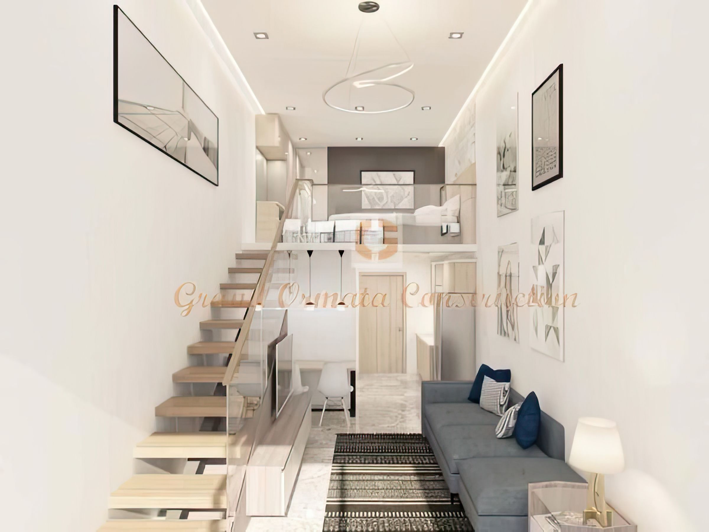 • Bespoke Living Space: The living area embodies Grand Ormata's signature style, featuring an open-plan layout that is both expansive and inviting. The striking mezzanine design, coupled with a sleek staircase, serves as a focal point, offering both visual interest and practical utility.